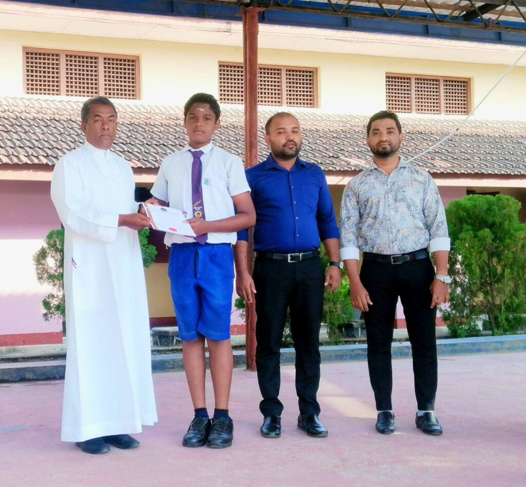 கிழக்கு மாகாணத்திலிருந்து தெரிவு செய்யப்பட்ட பாடசாலைகளில் இருந்து கொழும்பு தேர்ஸ்டன் கல்லூரியில் இடம்பெற்ற Knight Ro-2025 கல்விக்கண்காட்சியில் எமது பாடசாலை மாணவர்களின் தொழில்நுட்பம் சார்ந்த புதிய கண்டுபிடிப்புக்களும் காட்சிப்படுத்தப்பட்டன. இதனடிப்படையில் குறித்த கண்காட்சியில் சிறந்த புத்தாக்கங்களை காட்சிப்படுத்திய எமது பாடசாலையின் மாணவர்களுக்கான சான்றிதழ்கள் இன்று (02/09/2025) எமது பாடசாலையின் அதிபர் அருட். சகோ.ச. இ. றெஜினோல்ட் FSC அவர்களினால் வழங்கி வைக்கப்பட்டது.