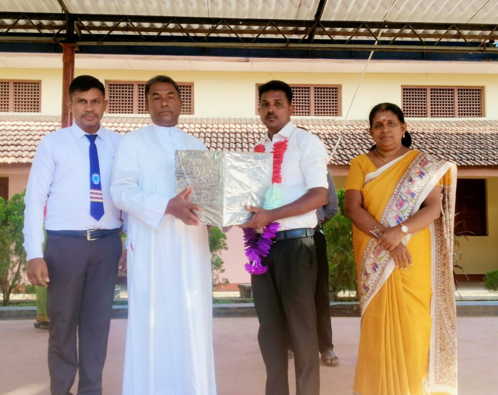 எமது பாடசாலையில் பணிபுரிந்து வேறு பாடசாலைக்கு இடமாற்றம் பெற்றுச்செல்லும் ஆய்வு கூட உதவியாளர்களான திரு.T. கண்ணன், திருமதி.P.சசிகுமார் மற்றும் திருK.சந்திரமோகன் அவர்களையும் பாடசாலை பணியாளர்களாக கடமையாற்றிய திருK.மாணிக்கவேலு மற்றும் திரு S.மயூரதன் அவர்களையும் வாழ்த்தி கௌரவிக்கும் நிகழ்வு அதிபர் அருட். சகோ. ச. இ. றெஜினோல்ட் FSC அவர்களின் தலைமையில் வெகு சிறப்பாக இடம்பெற்றது. இந்நிகழ்வின்போது அவர்கள் மாலை அணிவித்து வரவேற்கப்பட்டதோடு பாடசாலைக்கு ஆற்றிய சேவையினை பாராட்டி நினைவுப்பரிசில்களும் வழங்கி இன்று(01/07/2025) கௌரவிக்கப்பட்டனர்.
